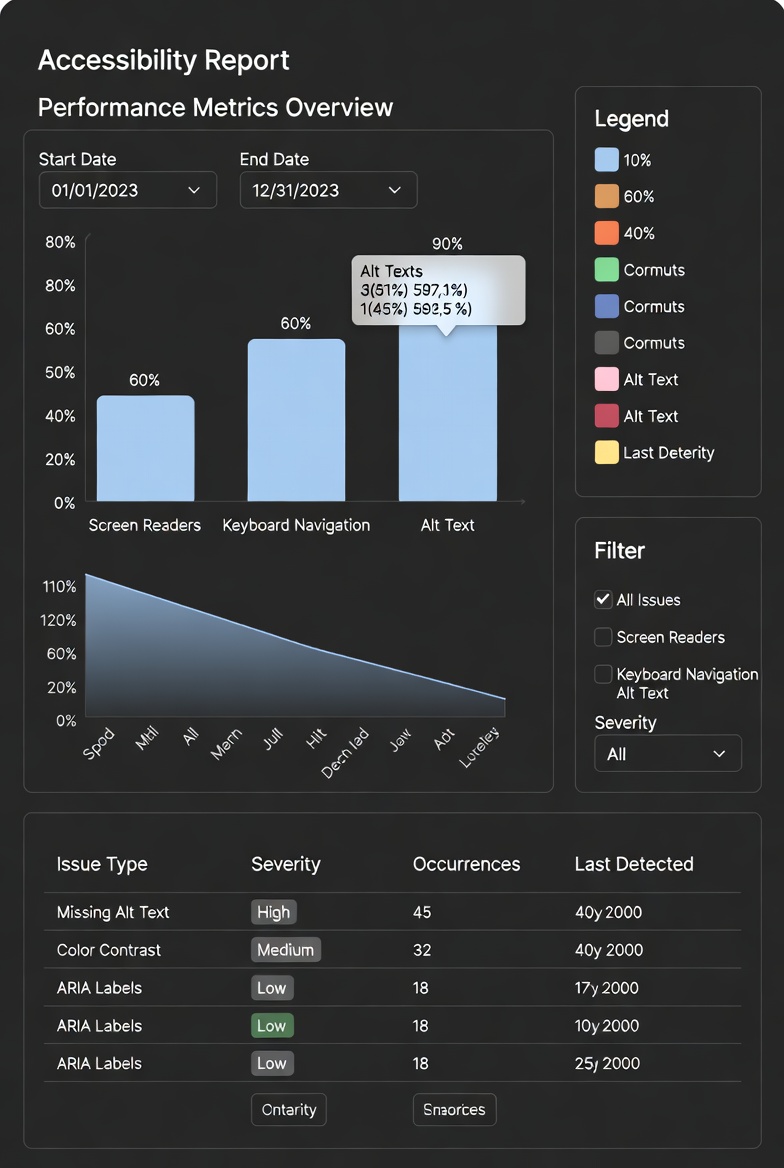AccessioAI uses AI to detect barriers and suggest fixes. It does not guarantee compliance with WCAG, ADA, EAA, or any other standard. All suggestions require human review. Achieving full compliance requires professional accessibility auditing.